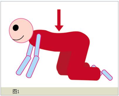 动作1(图1):拱起背部,同时双眼看向地面。然后腹部下沉,背部下陷,同时双眼望向上方。重复10次。