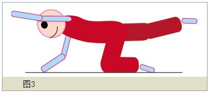 动作5(图3):手臂向前伸展,同时腿向后伸出。重复10次。